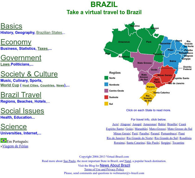 Great resource for studying Brazil. Site contains general information about the country, interesting facts, information about the five regions, and resources for teachers.