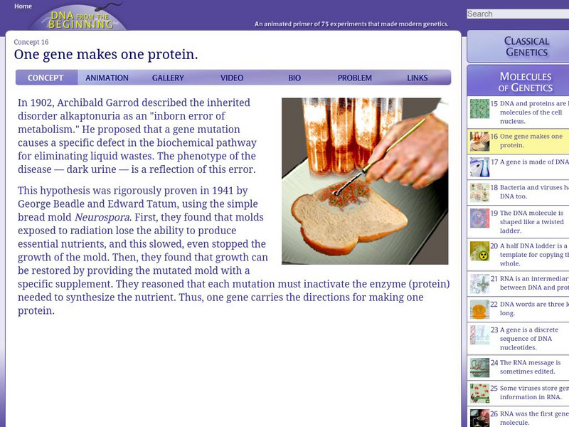 Early research showed that genes code for proteins. This was based on studies using mutant strains of bread mold. This multimedia article includes animations, pictures, video, biographical information, and quiz questions that are...