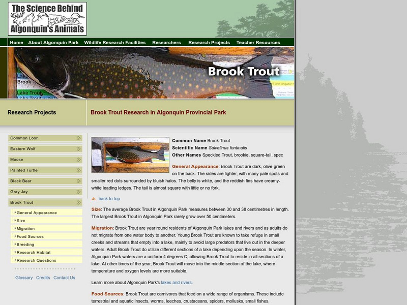 Learn about the Brook Trout's appearance, size, migration, food sources and breeding as well as the answers to other interesting research questions. Included is a video showing the capturing and marking of a Brook Trout and an...
