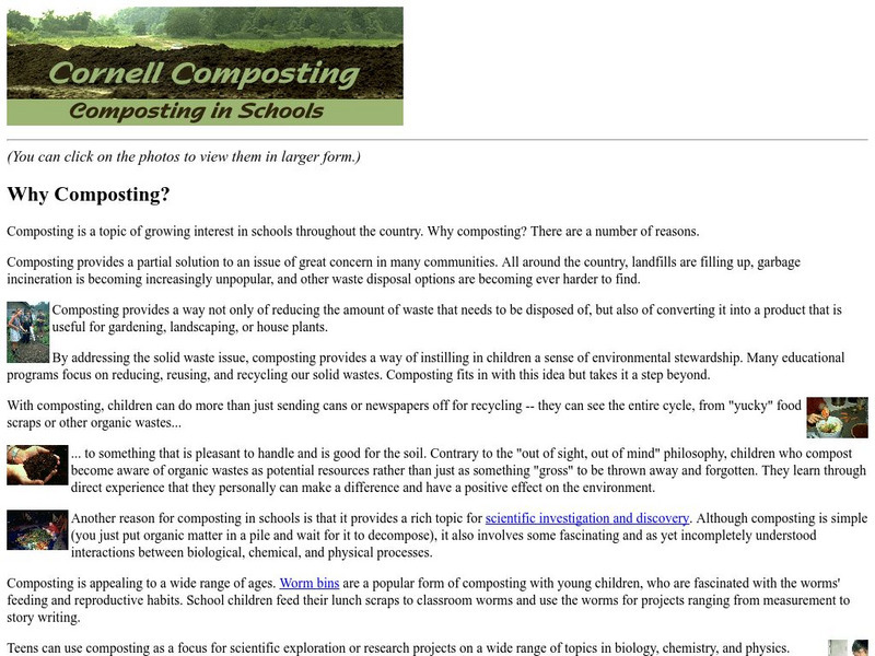 This article describes the advantages and opportunities that can be utilized by composting in schools. Biology, chemistry, and physics can all be explored with simple schoolyard composting.