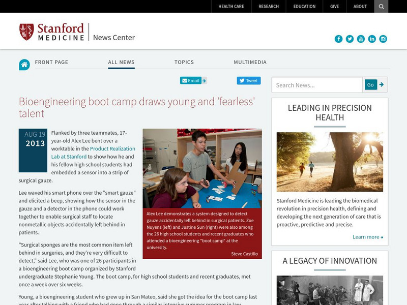 Stanford: Bioengineering Boot Camp Draws Young and 'Fearless' Talent