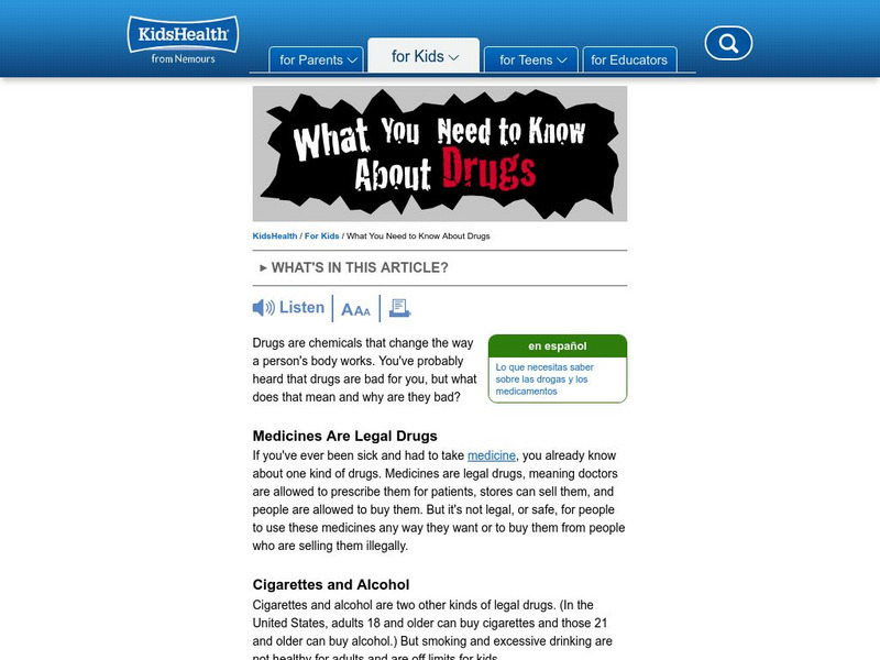 Students are curious about drugs and this is a simple site that delves into what they need to know: what drugs are good and what drugs are harmful, what are illegal drugs, like heroin and marijuana, and why are they illegal. The authors...