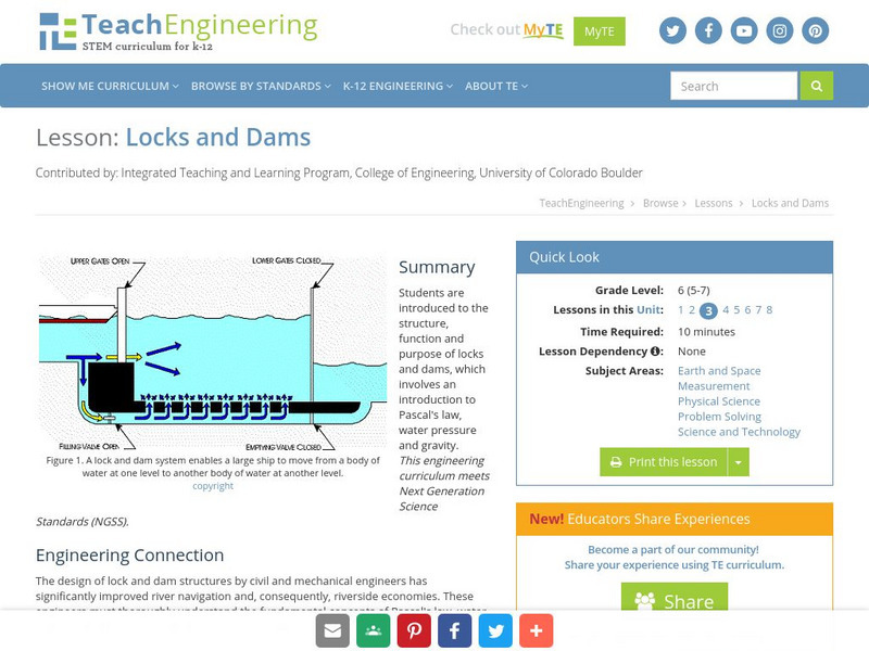 Students are introduced to the structure, function and purpose of locks and dams, which involves an introduction to Pascal's law, water pressure and gravity.