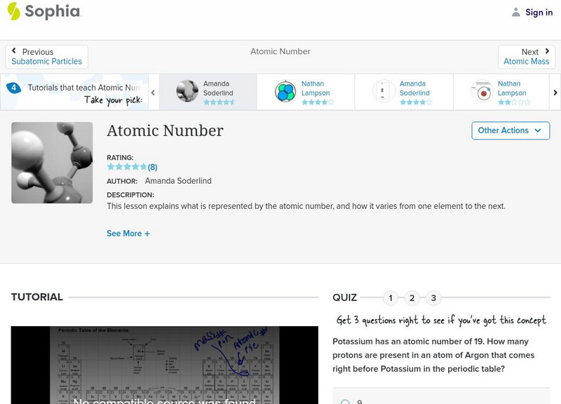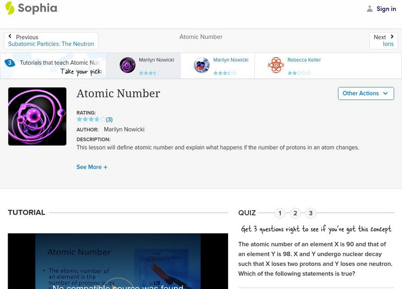This lesson explains what is represented by the atomic number, and how it varies from one element to the next. It is 2 of 7 in the series titled "Atomic Number."