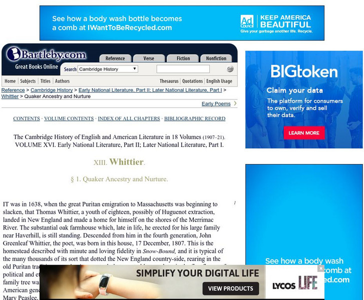 Bartleby.com: Whittier: Quaker Ancestry and Nature