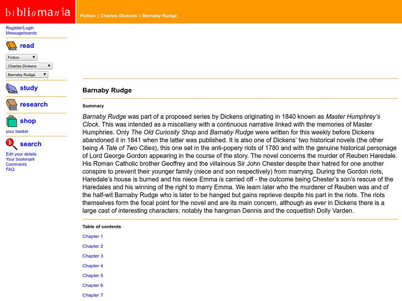 This site provides the full text to Dickens' novel "Barnaby Rudge." A brief summary is also included.