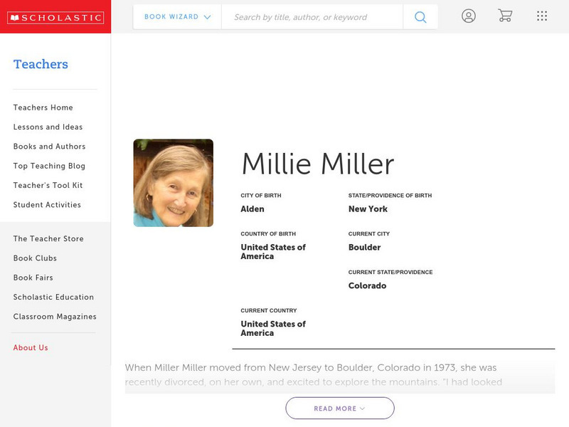 Read this biography to learn about author and illustrator Millie Miller. A link to a list of her books is provided.