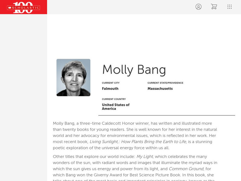 Read this biography to learn about award winning author Molly Bang. Links to her website and a list of her books are available.