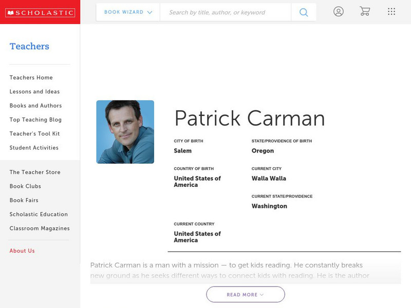 Read this biography to learn about author Patrick Carman. Links to his website, an author visit kit, and a list of his books are available.