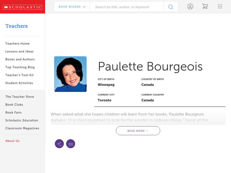 Read this biography to learn about author Paulette Bourgeois. A link to a list of her books is available.