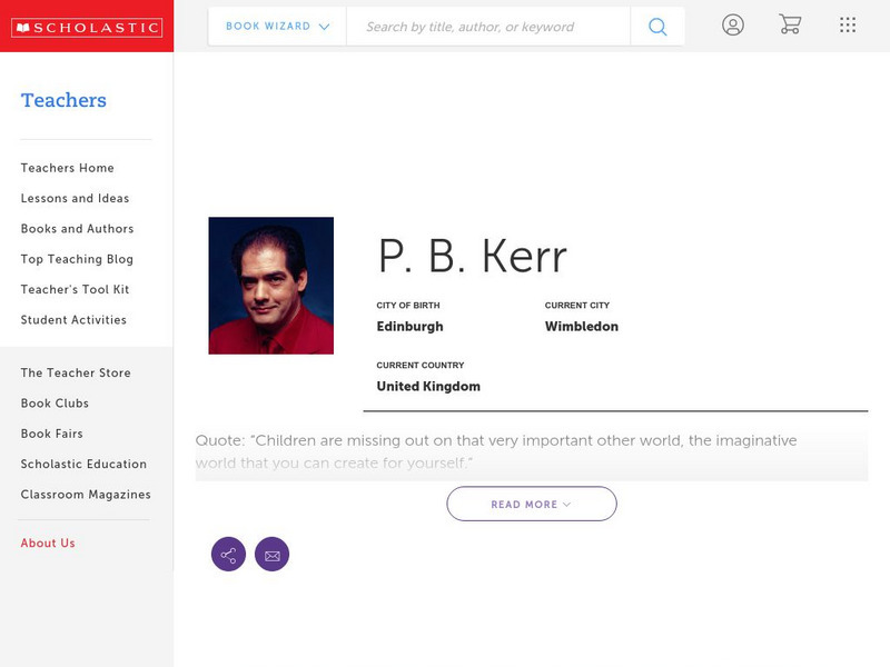 Read this biography to learn about author P. B. Kerr. Links to his website and a list of his books are available.