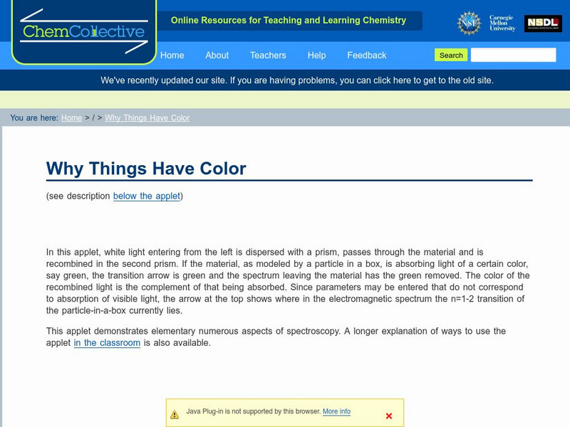 Acting as a subtopic of the General Chemistry Virtual Textbook's section on Atoms and the Periodic Table, this site discusses light in relation to particles and waves. The difference between particles and waves is addressed along with...