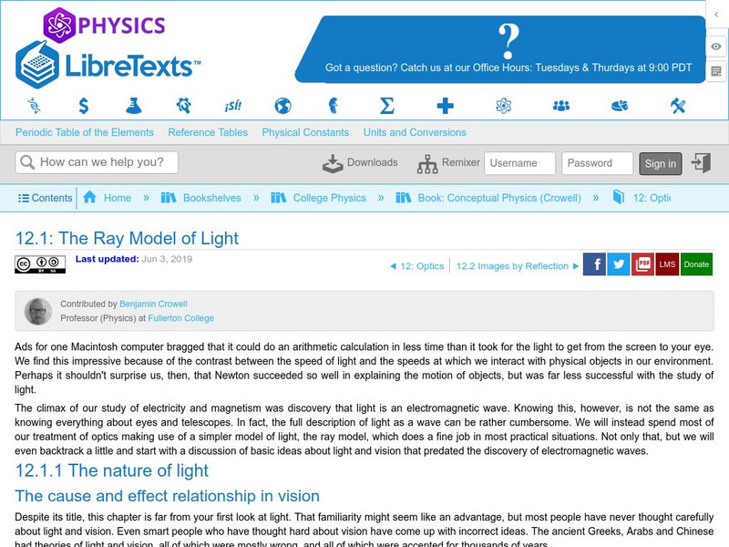 The Physics Classroom: Reflection/ray Model of Light: Mirror Portion Required