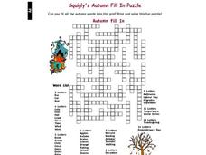 In this literacy worksheet, students use the words related to the theme of Autumn to solve the crossword puzzle. Spelling is emphasized.