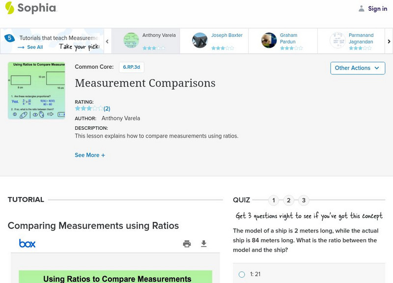 This lesson explains how to compare measurements using ratios. It is 3 of 5 in the series titled "Measurement Comparisons."