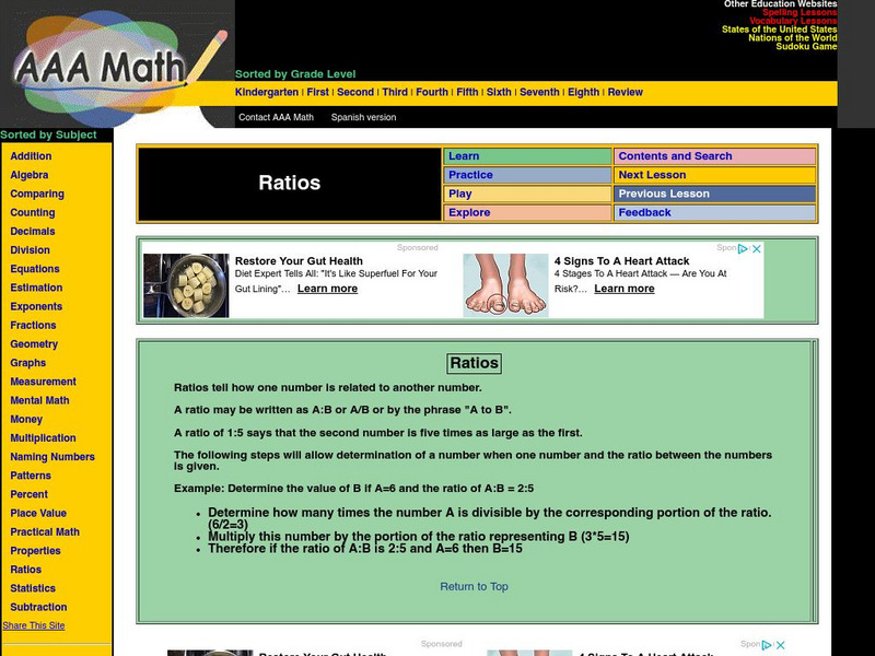 Varsity Tutors: Hotmath: Practice Problems: Ratios and Rates 2