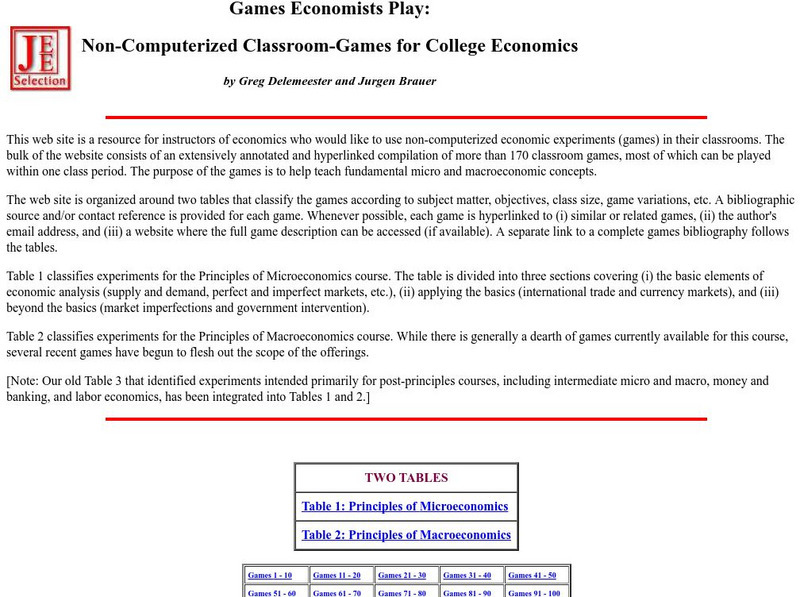 This is an invaluable site from Marietta College which consists of over 130 non-computerized classroom games for economics. Would be great to use in a high school economics class. Games relate to a vast amount of economic concepts....