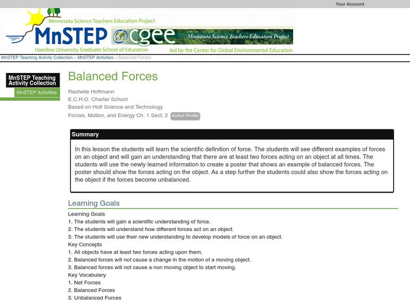 Students examine the concepts of balanced forces, unbalanced forces, and resulting net forces. They participate in a force and motion demonstration by pushing students in various directions, and calculating and identifying the resulting...