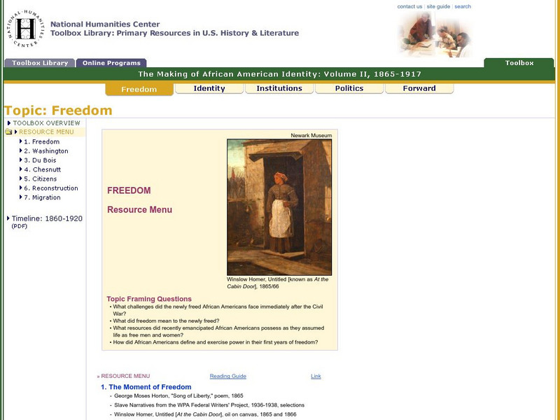 National Humanities Center: Toolbox Library: The Moment of Freedom: Making African American Identity