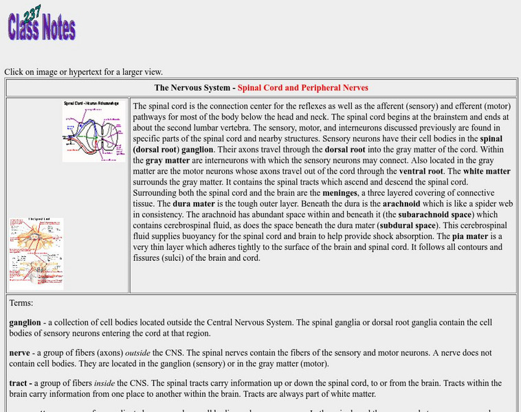 Class notes on The Nervous System - Spinal Cord and Peripheral Nerves.