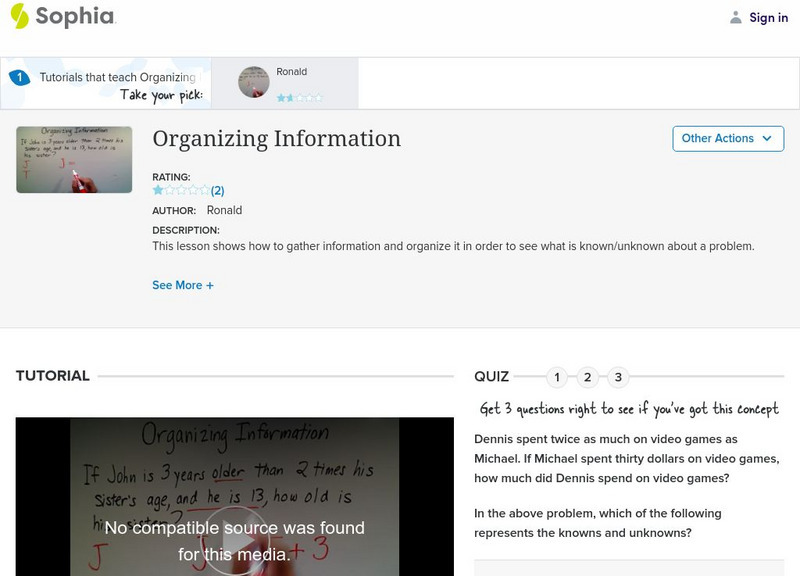 This lesson shows how to gather information and organize it in order to see what is known/unknown about a problem. It is 8 of 9 in the series titled "Organizing Information."