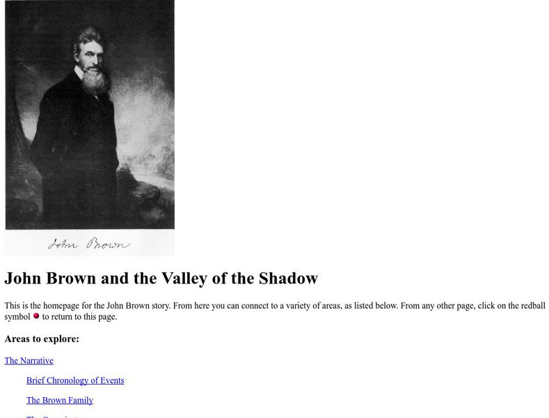 This site provides a look at John Brown's life. Content includes a chronology of events in his life, a look at his family and cohorts, newspaper articles, eyewitness accounts, and more.