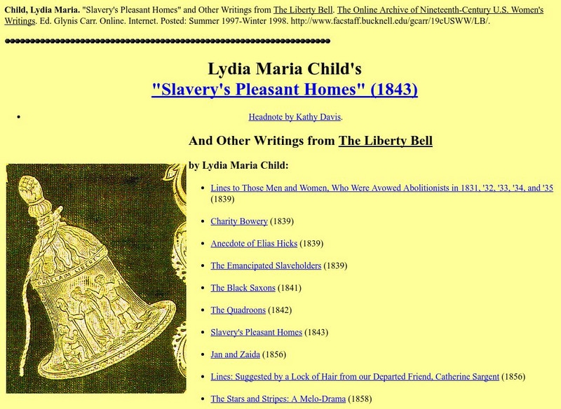 19th C. u.s. Women's Writings: Lydia Maria Child's "Slavery's Pleasant Homes"