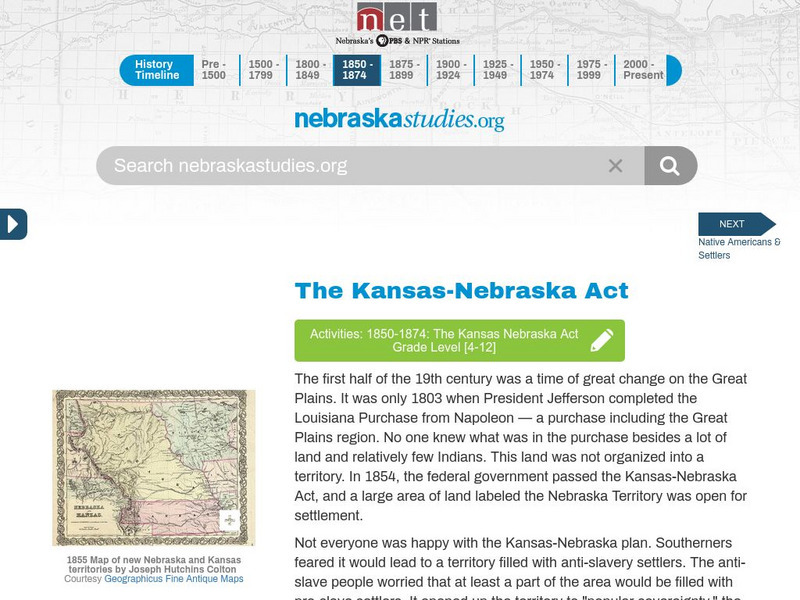 An outstanding, interactive copy of the Kansas-Nebraska Act, the legislation that repealed the Missouri Compromise. Historical context included, as well as links to larger images, a typed transcript, and a downloadable PDF file.