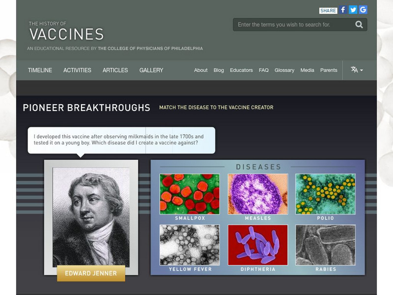 The purpose of this instructional activity is to offer suggestions on how to use the History of Vaccines website in a high school biology or health class. This lesson plan provides learners with a broad overview of the website, while...