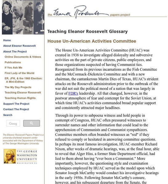 Eleanor Roosevelt Papers Project: House Un American Activities Committee