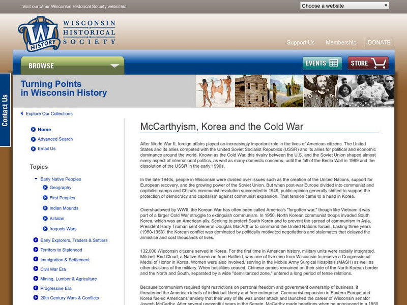 Wisconsin Historical Society: Mc Carthyism, Korea and the Cold War