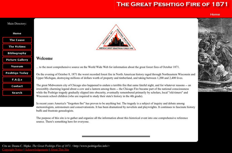 This personal site is dedicated to the victims of the "largest natural fire in the history of the United States. By some estimates, nearly two thousand people were killed." Site offers many related links.