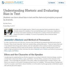 Students can learn about bias in text and the rhetorical principles proposed by Aristotle.