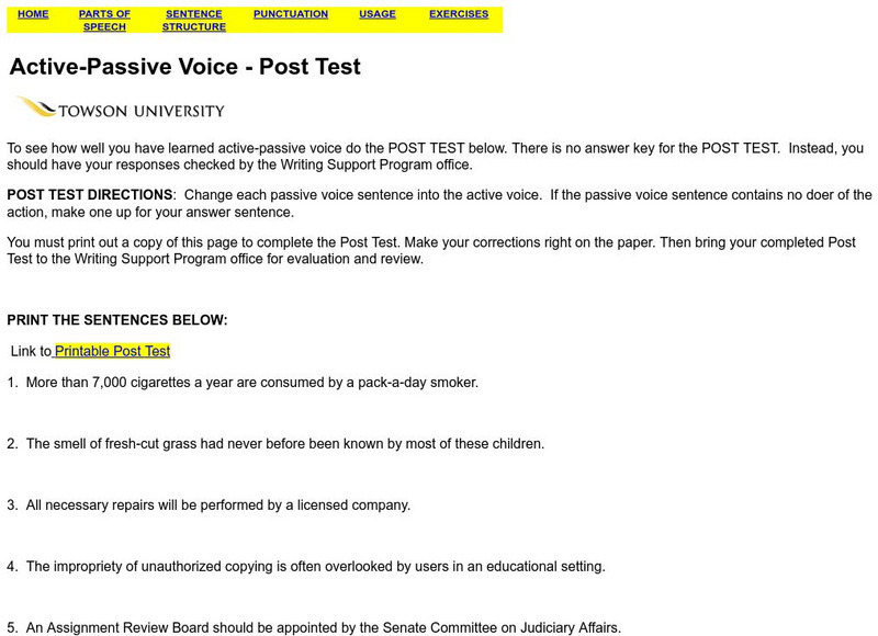 Use this tutorial to ensure understanding of the passive voice and about how to use it. Students can test their understanding after the explanation.