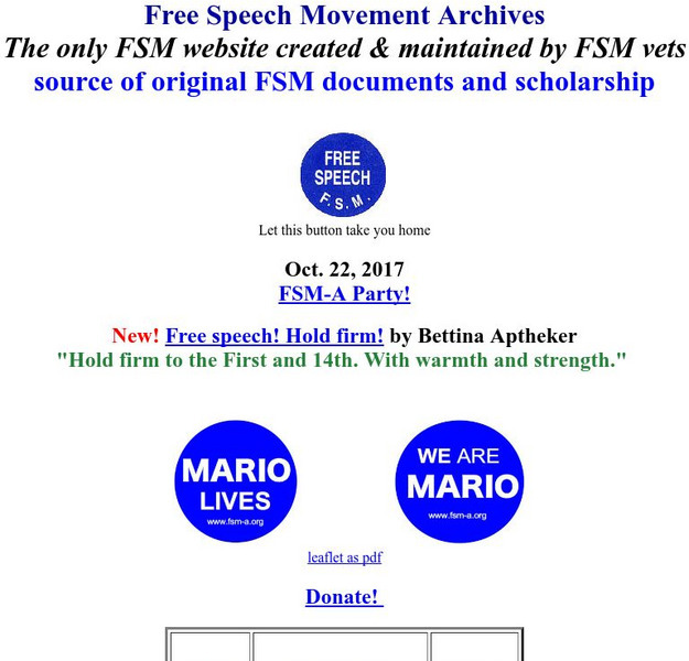 A digital archive that documents the Free Speech Movement led by Mario Savio during September-December 1964. Site includes bibliography, documents, online videos, and sound recordings.