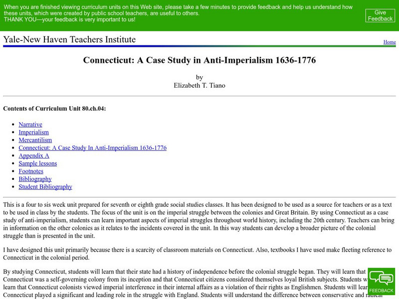Yale New Haven Teachers Institute: Connecticut: A Case Study in Anti Imperialism