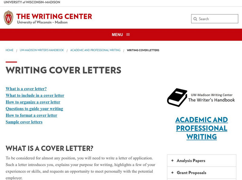 University of Wisconsin Madison: Writing Center: Writing Cover Letters