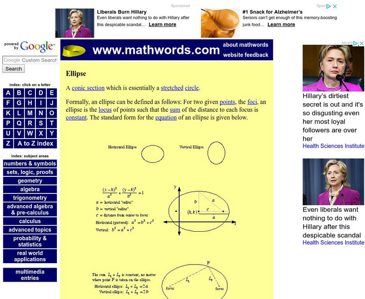 The definition for foci for an ellipse is given and the definition for ellipse is given. Also gives a diagram and the equation for an ellipse in standard form.