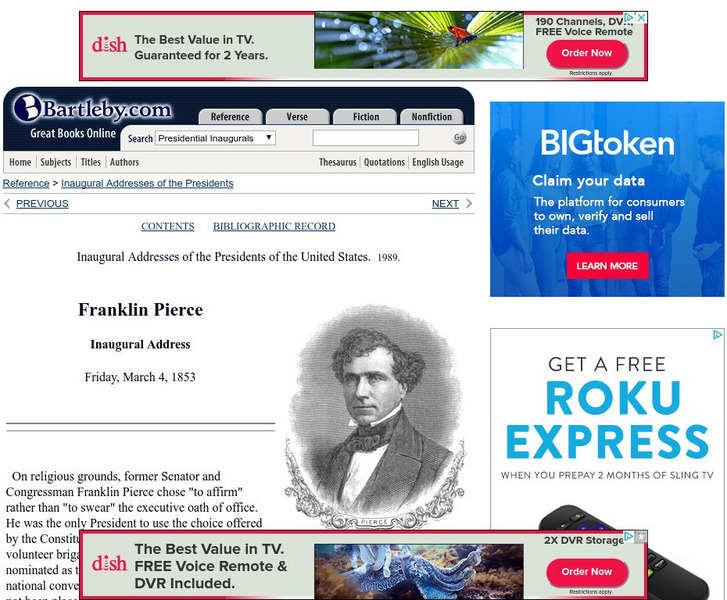 Bartleby.com: bartleby.com: Presidential Inaugural Address: Franklin Pierce