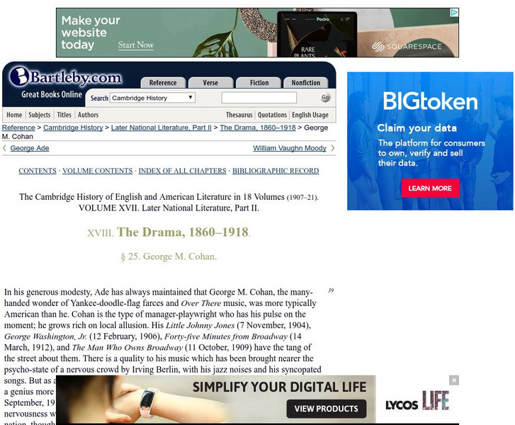 Bartleby.com: The Drama, 1860?1918, George M. Cohan
