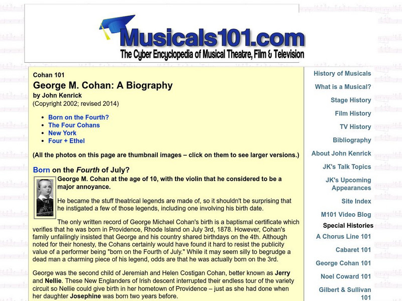 Musicals 101 provides an excellent, lengthy biography of George M. Cohan, vaudville legend. Includes many images and quotes.