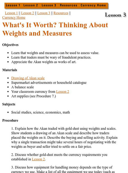 Smithsonian Education: What's It Worth? Thinking About Weights and Measures