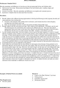 Learners investigate the concept of using box and whisker plots. They demonstrate how to use them to compute median, mode, and range. Students compare and contrast the complete and systematic processes use to solve problems. This is done...