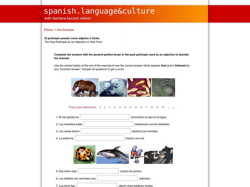This site reviews the uses and the formation of the past participle in Spanish. After this review, the user may choose to complete practice activities to test comprehension.