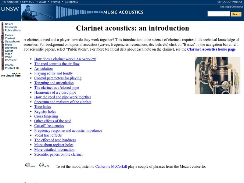University of New South Wales: Introduction to Clarinet Acoustics