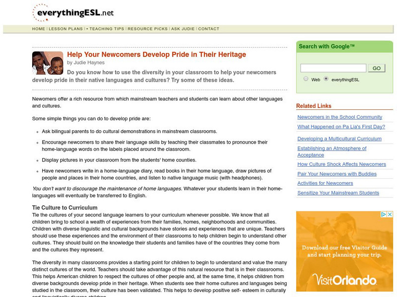 Everything Esl: Help Newcomers Develop Pride in Their Heritage