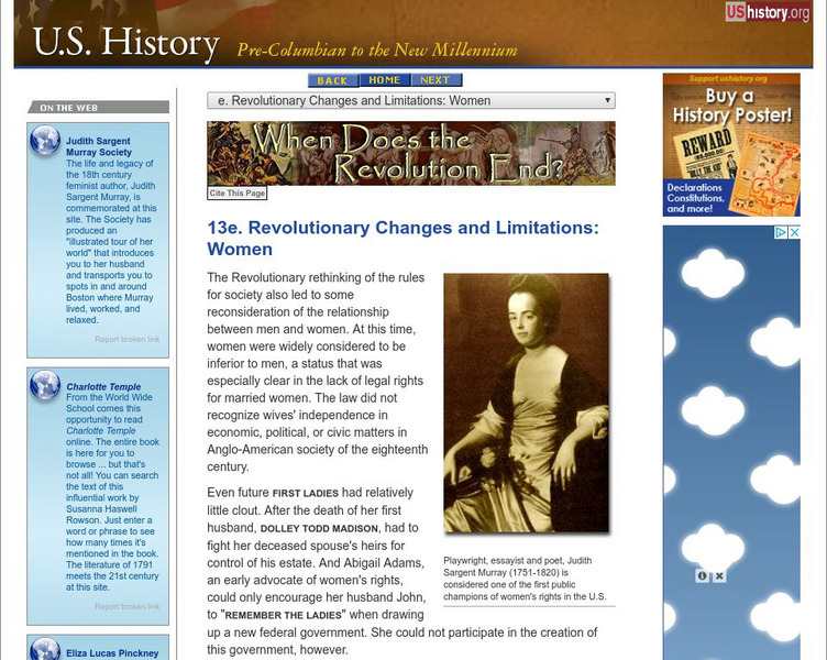 U.s. History: Revolutionary Changes and Limitations: Women
