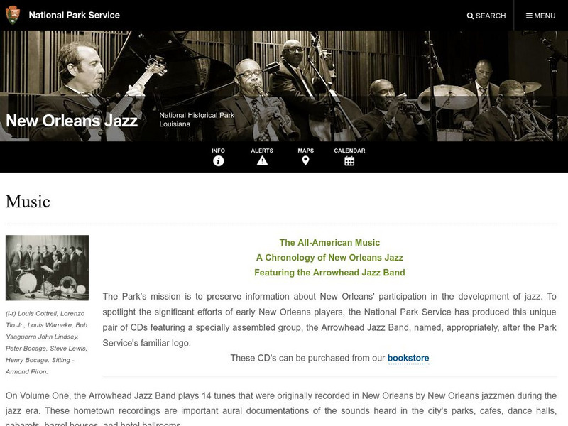 Dozens of audio clips of New Orleans-style jazz music from different time periods: 1920s and 1930s, 1940s and 1950s, and the year 2000.