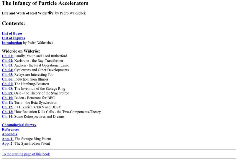 An autobiography of Rolf Wideroe, an important figure in the development of accelerators. Many mentions of betatrons are made in the introduction and chapters 6, 7, 10 and 11. The site includes some technical information.