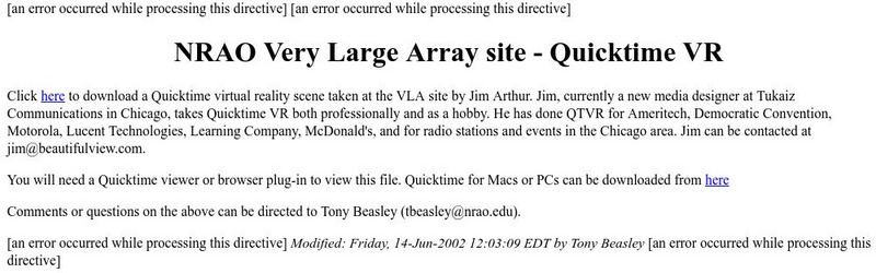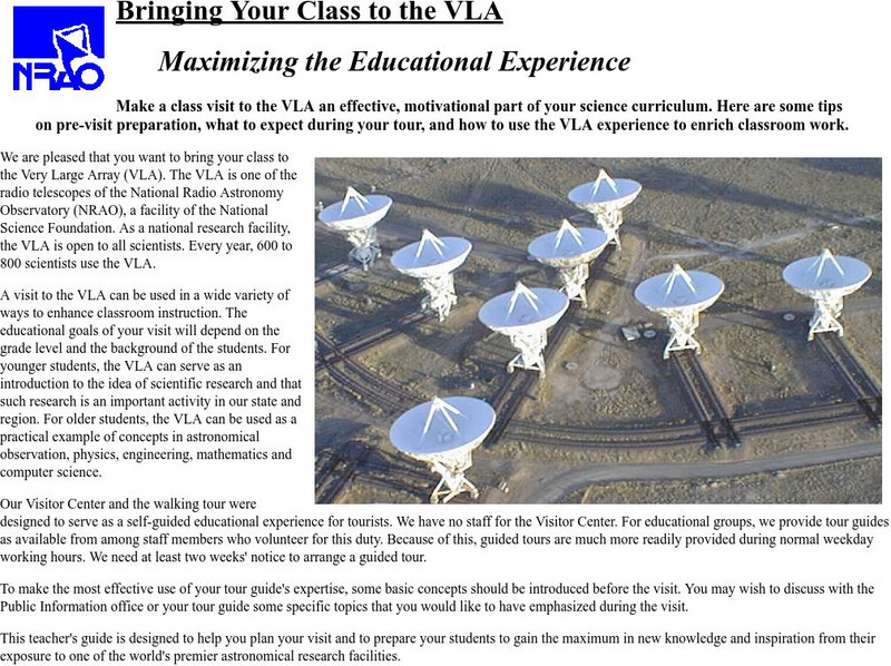 Helps teachers arrange a trip to visit the radio telescope VLA. For those of you not near (New Mexico) it also gives connections into the physics, astronomy and electronics courses. It also has a healthy bibliography of sources.